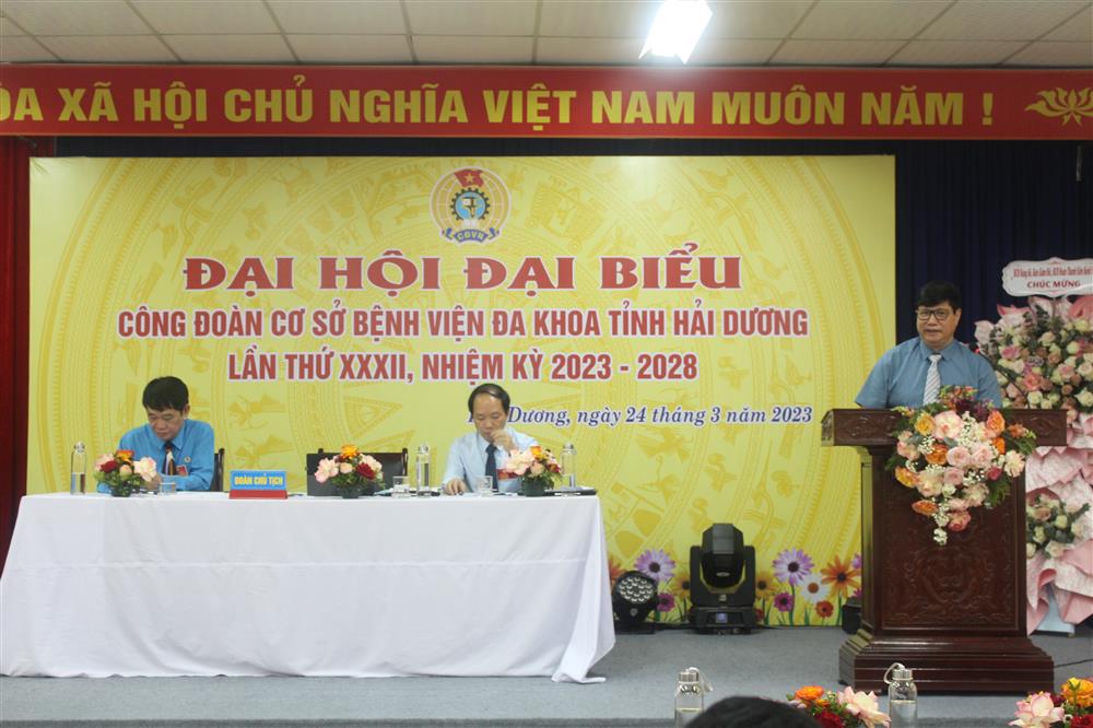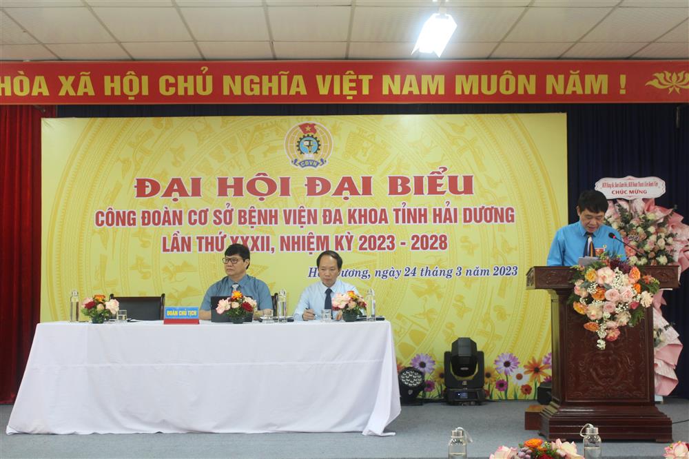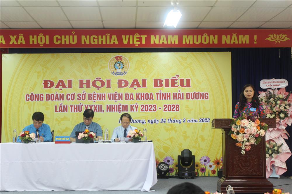 Phát biểu tại Đại hội, đồng chí Nguyễn Thị Bình ghi nhận và biểu dương những thành tích và kết quả đạt được của Công đoàn cơ sở BVĐK tỉnh Hải Dương trong thời gian qua. Đồng chí đề nghị trong nhiệm kỳ tới, Công đoàn cơ sở BVĐK tỉnh Hải Dương tiếp tục đổi mới nội dung, phương thức hoạt động của tổ chức công đoàn, lấy đoàn viên, cán bộ viên chức làm đối tượng vận động; làm tốt hơn nữa vai trò là đại diện, chăm lo, bảo vệ lợi ích của đoàn viên và người lao động; xây dựng đội ngũ cán bộ công đoàn bản lĩnh, trí tuệ, chuyên nghiệp, đóng góp thiết thực vào sự phát triển ngày càng lớn mạnh của Bệnh viện BVĐK tỉnh Hải Dương”.