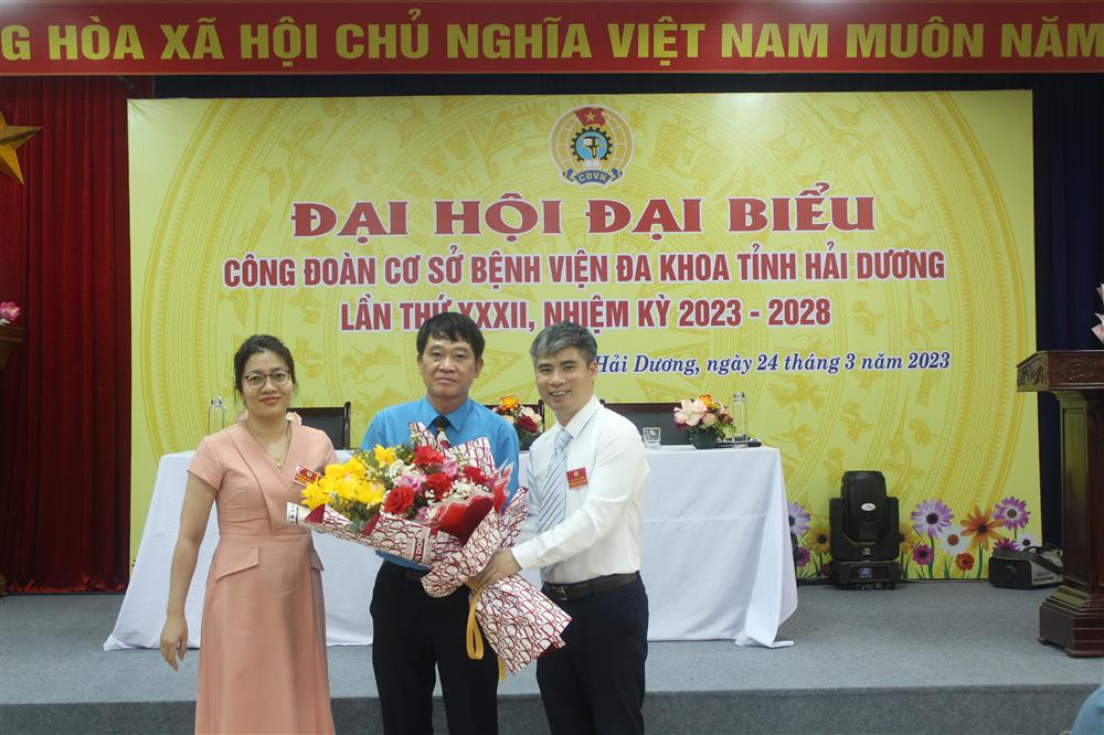Đại hội có sự tham dự của đồng chí Trần Quang Cảnh – Giám đốc sở Y tế Hải Dương và đồng chí Nguyễn Thị Bình – Chủ tịch Công đoàn Ngành Y tế tỉnh Hải Dương.