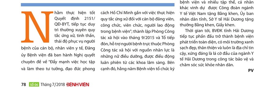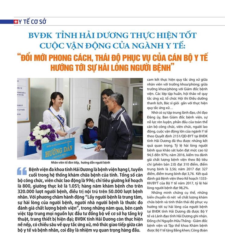 Bệnh viện đa khoa tỉnh Hải Dương thực hiện tốt cuộc vận động của ngành Y tế: " Đổi mới phong cách, thái độ phục vụ của cán bộ y tế hướng tới sự hài lòng người bệnh"
