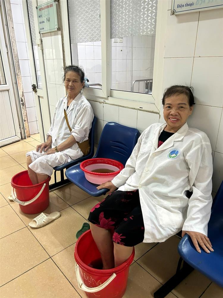 Ngâm chân nước nóng là phương pháp trị liệu đơn giản và mang lại nhiều lợi ích cho sức khỏe. Ngoài một số lưu ý cụ thể khi ngâm chân, bất kỳ ai cũng có thể ngâm chân nước nóng hàng ngày để chữa bệnh, cải thiện sức khỏe và tinh thần. Bởi tác dụng tuyệt vời này tại khoa Y Học Cổ Truyền - Bệnh viện Đa Khoa tỉnh Hải Dương tất cả các bệnh nhân không có chống chỉ định với ngâm chân đều được ngâm chân thảo dược hàng ngày trong quá trình điều trị mục đích để hoạt huyết, an thần, nâng cao sức đề kháng, giảm đau nhức xương khớp, tăng cường khả năng hồi phục khớp xương, giảm tê bì tay chân, góp phần thúc đẩy nhanh hơn quá trình khỏi bệnh.